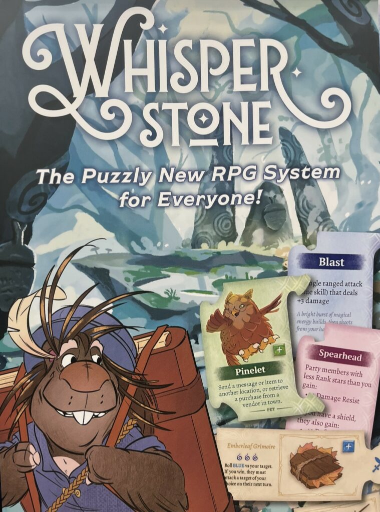 - Whisperstone, un jeu entre jeu de société et jeu de rôle utilisant un système de puzzle à sortir chez Flatout Games.