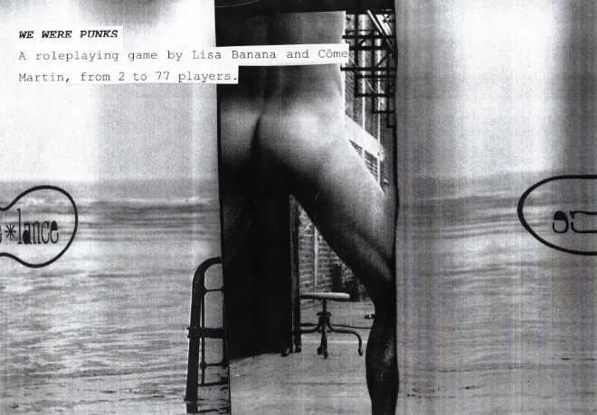 - We were punks, un jeu expérimental co-créé avec Lisa Banana expérimental qui se joue d’abord en solo, puis en groupe et enfin en ligne, avec d’autres groupes, pour partager vos souvenirs, expériences et créations autour d’un fanzine de punk.
