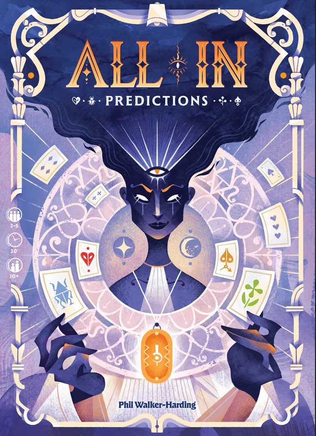 - All in: Predictions, un jeu de Phil Walker-Harding, illustré par Dan Gartman, édité par Next Move Games